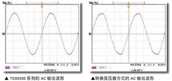 从前的滑动变压器方式时,输入电压的变动会影响到输出,有时可能无法正确完成测试。当变形的电压施加到被测试物的时候,有可能会形成产品不良的原因(加速部件的劣化)。TOS5200不会受到AC线路变动的影响,能够输出稳定的高电压,即使在电压变动大的地区,也可以安心,稳定的实现可靠性高的安全测试。还有输出频率也可以选择50Hz / 60Hz。