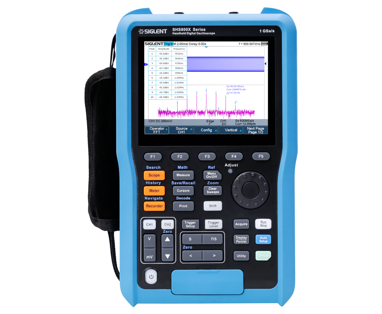 SHS800X系列手持示波表以其高性价比和出色的性能赢得了市场的广泛认可。该系列提供70 MHz至200 MHz的带宽选择,适合多种应用场景。其双通道设计结合1 GSa/s的采样率和12 Mpts的存储深度,确保了信号的完整性和准确性。