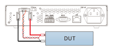 当负载消耗较大电流的时候,就会在电源到负载端子的连接线上产生压降(1000V及以上机型,不具备远端感应功能),远端感应可以自动补偿负载线的压降。远端感应功能电源量测的接线示意图如下: