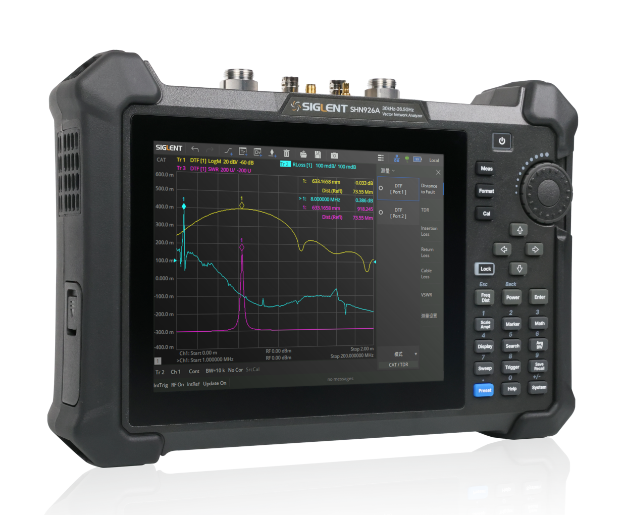 矢量网络/频谱分析频率范围:30 kHz~14/20/26.5 GHz 天线和电缆测量频率范围:30 kHz~14/20/26.5 GHz 动态范围:100 dB 中频带宽范围:10 Hz~3 MHz 输出功率设置范围:-45 dBm ~ +10 dBm 大容量电池供电,待机4小时,GPS定位 支持全双端口S参数测量、差分/平衡测量 支持CAT/DTF测量,频谱分析,TDR时域分析主要特性